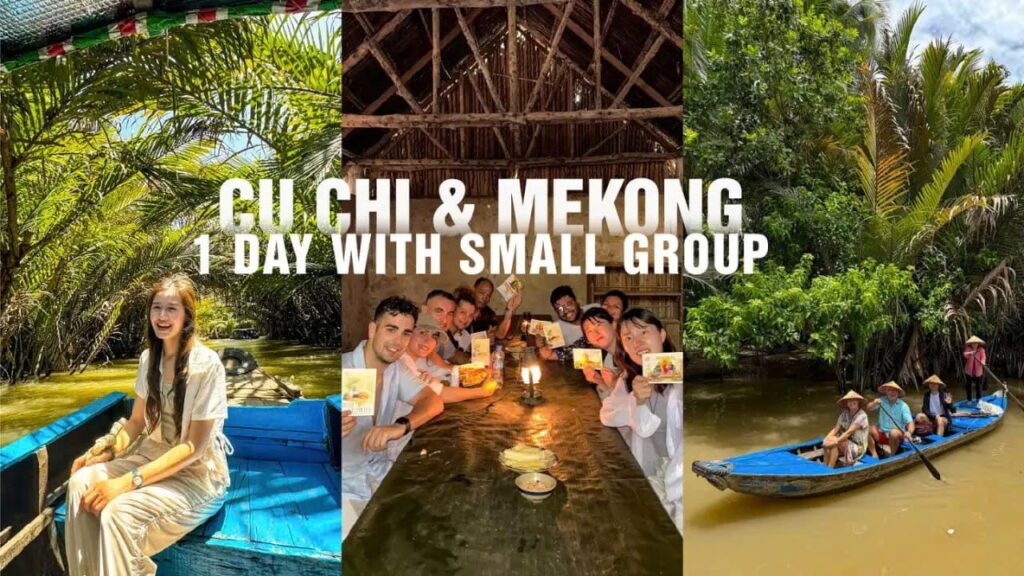After visiting Cu Chi, guests have lunch in My Tho, then enjoy a boat ride on the Tien River to Unicorn Island. You’ll pass Dragon, Phoenix, and Turtle Islands, and enjoy Southern Vietnamese Folk Music performed by locals. Activities include visiting a coconut candy workshop, sampling honey tea, and rowing along narrow canals. You’ll also visit Ben Tre to experience a local agricultural model known as ‘Garden – Pond – Cage’.